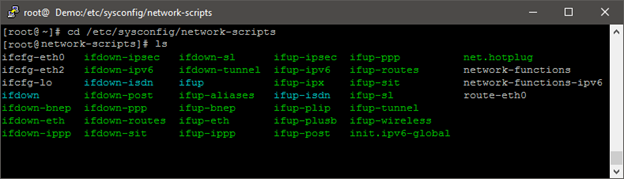بعد از رفتن به مسیر مربوطه با دستور cd /etc/sysconfig/network-scripts