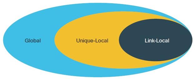گروه آدرس های Unique Local: این نوع از آدرس علیرغم اینکه در خارج از محدوده هر لینک قابل دسترس می باشد دارای مفهوم و معنا در داخل یک بازه خاص و محدوده خاص هستند. و انتظار می رود که بر روی اینترنت دیده نشوند. بنابراین در داخل یک سازمان در بخش های مختلف آن و در داخل یک Domain مشخص قابل Route می باشند. تفاوت این دسته از آدرس با آدرس های خصوصی مورد نظر در RFC1918 این است که آدرس های Unique local به صورت global یکتا می باشند و قابل مدیریت بوده و امکان استفاده تکراری آن در سازمان های مختلف توصیه نشده است.