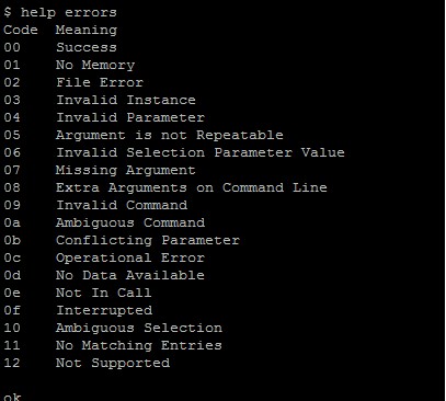 با زدن دستور help errors می توان شماره خطاهای سیستم و معنی آن ها را به صورت زیر دید.